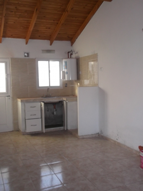 MUY BUEN DEPARTAMANTO TIPO CASA DE 3 (TRES) AMBIENTES, "DEPTO 4", CON GARAGE (opcional), POR PASILLO: CUENTA CON UN LIVING COMEDOR CON LA COCINA INTEGRADA, PISOS Y REVESTIMIENTO DE CERAMICA Y PAREDES CON REVOQUE FINO, BAÑO INSTALADO CON CERAMICAS EN PISO Y PARED, CON DUCHA, PATIO CON PISO DE CELAMICA, MESADA, LAVADERO CON INSTALACION DE LAVARROPAS, DOS DORMITORIOS, TODO DESARROLLADO EN PLANTA BAJA, CIELORRAZO DE MADERA BARNIZADA, MUY BUENA CALIDAD, RECIEN PINTADO.