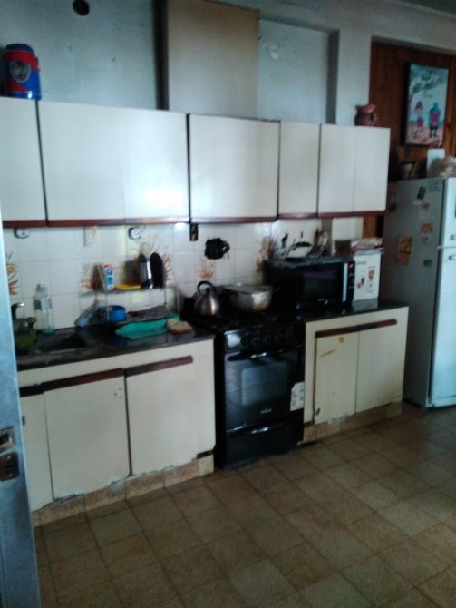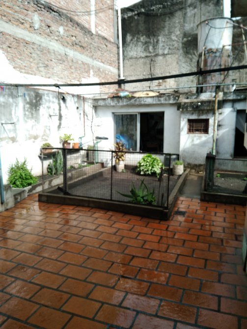 Planta Baja: Se ingresa por un pasillo lateral techado que comunica con la parte posterior del terreno, también se puede ingresar por un garage con persiana y puerta de escape, al final del garage existe un pequeño patio cubierto que comunica con un toilette de visita, a medio pasillo una puerta de aluminio nos permite el ingreso a la amplísima cocina comedor living integrada y totalmente instalada, a la derecha se ubica un ante baño y un baño totalmente instalado, por un pasillo se ingresa al dormitorio cuya ventana da al frente del inmueble y desde la cocina por una puerta balcón se accede al amplio patio ubicado en la parte posterior del terreno, donde en el contra frente del terreno se edifico un quincho con parrilla totalmente revocado a fino, existe una puerta desde el patio que comunica con el pasillo lateral, lo que le da una doble circulación a esta parte del inmueble.