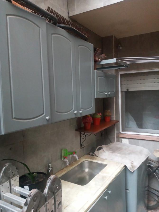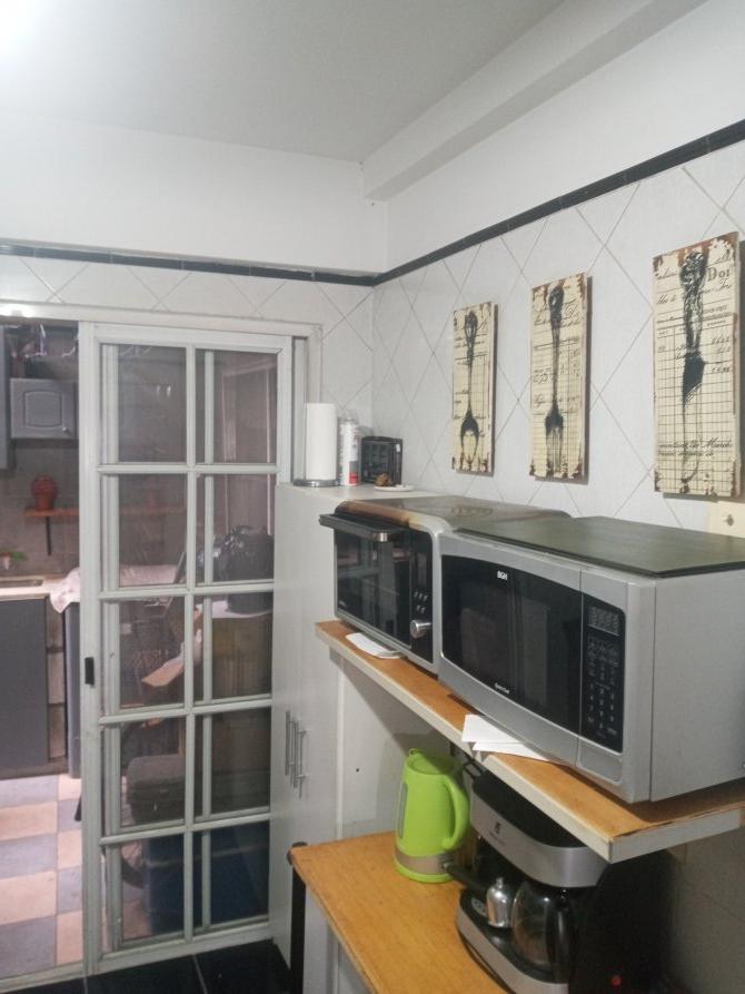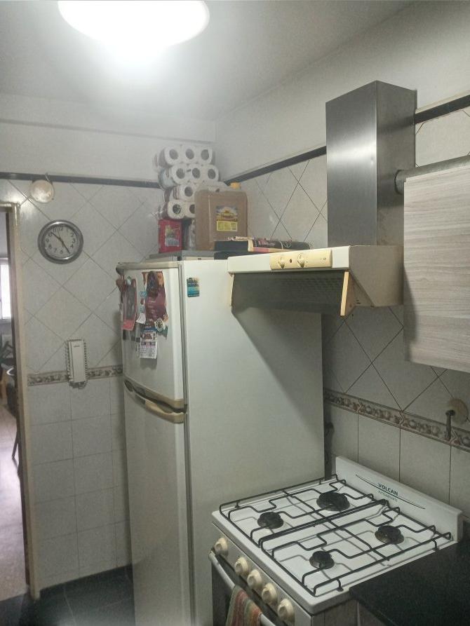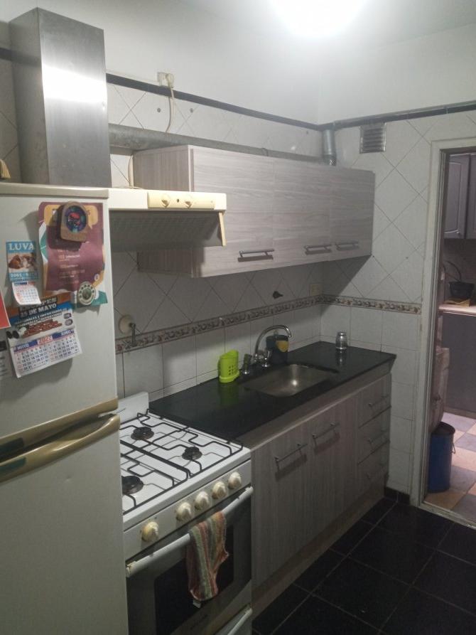 La cocina tiene un bajo mesada con dos puertas y tres cajones, mesada de mármol negro, alacena con tres puertas, cocina Volcán de cuatro hornallas, extractor, termotanque de 80 litros, todo instalado y funcionando, pisos con de cerámica y paredes revestidas a de piso a techo con cerámicas y guarda, una puerta balcón de aluminio anodizado y vidrios repartidos, que comunica con el patio donde está ubicado físicamente el termotanque , pisos de cerámica, lavadero y parrilla con techo rebatible y rejas de seguridad. Desde la cocina y el living se comunica a un pasillo distribuidor con una pared y techo revocadas a fino y otra pared revestida en madera, con piso de mosaico. que comunica con el baño que dispone de piso de cerámica y paredes de piso a techo revestidas con cerámicas con guarda y un placard, con inodoro bidet, vanitory y espejo con instalación de agua caliente y fría, hacia el interior del pasillo se encuentra el el dormitorio secundario empapelado y con placard embutido, piso flotante y techos revocado a fino y ventana que da al patio interno y finalmente el dormitorio principal con pisos de parquet, placard embutido ventanal que da a la calle con percianas y rejas de seguridad con un aire acondicionado (no funciona), y las paredes y techo revocadas a fino. Bajas expensas, ya que el edificio no tiene ascensores y puede usar la terraza para tender la ropa.